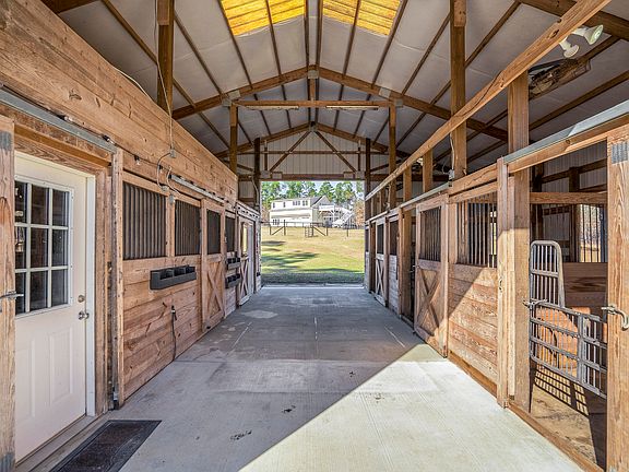 - Horse amenities: Center Aisle, Grooms Quarters, Paddocks, Tack Room, Wash Rack, Washer/Dryer Hookup, Water & Electric