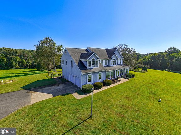 Nestled in the heart of Jarrettsville, this stunning estate-style Colonial sits on 25 picturesque acres of gently rolling countryside, complete with a spring-fed pond, open fields, mature trees, and breathtaking views in every direction. Set far off the main road, a newly paved asphalt driveway winds its way through the property, offering a grand sense of arrival and exceptional privacy. At the entrance, you’ll find a custom enclosed front porch with floor to ceiling windows, sliding glass doors perfect for beautiful days to enjoy the breeze and panoramic views of the surrounding landscape. Inside, the main level features an abundance of living space, 9-foot ceilings, crown molding throughout, and a dramatic two-story foyer with hardwood flooring. Conveniently located off the entryway is a half bathroom, perfect for guests. The main level offers a flowing layout with multiple spaces for relaxation and entertaining. Enjoy gatherings in the bright and inviting living room, unwind in the cozy sitting room, or host memorable dinners in the formal dining room. Each space is thoughtfully arranged to balance functionality with charm. The spacious great room is also sure to impress with cathedral ceilings, skylights, custom windows, and a cozy wood-burning fireplace, creating a warm and inviting space to gather. The eat-in kitchen offers a breakfast bar, ample cabinetry, and generous table space. Just off the kitchen, French doors lead to a rear deck overlooking the rolling hills—an ideal backdrop for relaxing or entertaining. A mudroom/laundry room is conveniently located off the 2-car side-load garage, and the main level also offers the potential for a first-floor primary suite with minimal modifications—perfect for multi-generational living or future flexibility. Upstairs, you'll find four oversized bedrooms with plenty of storage and a full hallway bathroom. The primary suite is a true retreat, entered through double doors, and featuring hardwood flooring, vaulted ceilings, a sitting room, walk-in closets, and a spacious en-suite bath with a soaking tub and separate shower. The lower level offers nearly 1,500 square feet of additional potential, featuring very high ceilings, full-size windows, and walk-out access to grade. Already insulated and equipped with a bathroom rough-in, this space provides the perfect opportunity for a future homeowner to design their desired layout—whether it’s a rec room, in-law suite, home gym, or additional living space. Outside, the property continues to impress with a large barn equipped with electric—also ideal for a workshop, storage, or a hobby enthusiast —as well as three separate sheds for all your tools and equipment. This one-of-a-kind property is ideal for a family compound, multi-generational living, or anyone seeking extra privacy and room to spread out. Whether you're looking for a peaceful retreat or a forever home surrounded by nature, 1134 Chrome Hill Road offers space, beauty, and unmatched potential. Professional Photos to come!