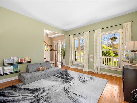 Fabulous "BETTER THAN NEW" 4 bedroom 3 1/2 bath home features beautiful hardwood flooring throughout first floor, floor-to-ceiling brick fireplace, updated kitchen, finished deep pour basement, and fenced yard. The kitchen has white cabinetry, newer hardware, granite countertops, breakfast bar, plenty of table space for daily dining, and stainless steel appliances. Spacious dining room is perfect for entertaining and features wainscoting and crown molding. Luxurious second floor master suite includes large master bath with "his'" and "her" sinks, tiled shower, jetted tub and huge walk-in closet. Enjoy the upstairs den or playroom and second floor laundry for your convenience! 3 additional bedrooms and bath complete this level. Finished basement offers tons of room for entertaining, wet bar with wine fridge and full bath. Garage is 2.5 car tandem. NEWER UPDATES: A/C 2021, Furnace 2020, Dishwasher 2021, Updated light fixtures, Carpet upstairs 2019. Hardwood 2018. White cabinets painted 2018. Painted master bedroom, bedroom and bath, living room, family room, kitchen, mudroom and front door. Stained fence 2020. This home is impeccable and move-in ready! Start making wonderful memories here!