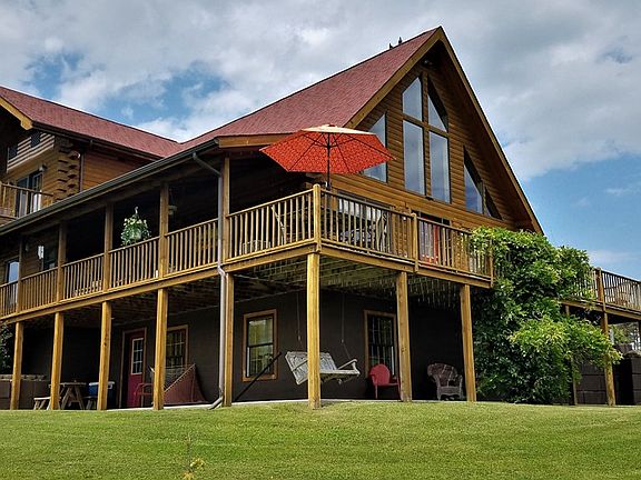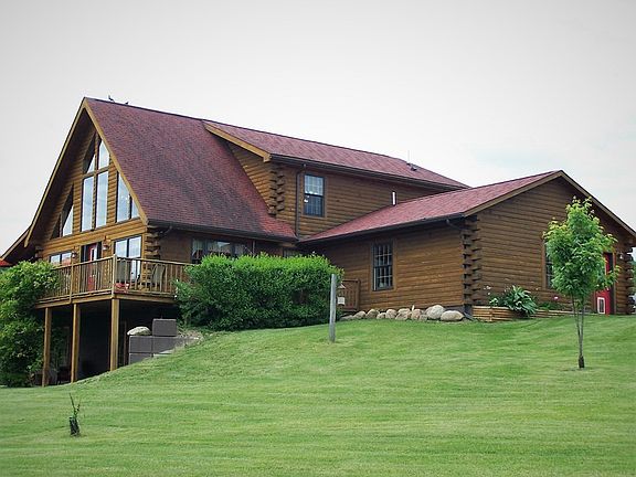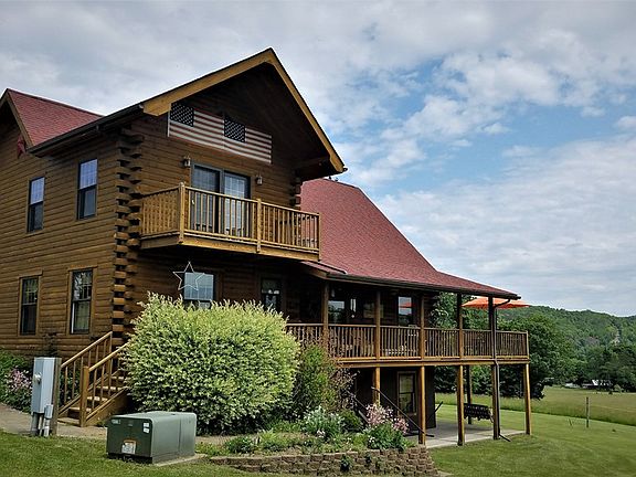 Perfect Combination of House, Workshop, Barn & Land. Open Concept Log Home sits on 38.77 acres with 3 ponds, pasture land, large 40 X 70 business/machine shop with a car-lift, 2 story barn with hay loft, chicken/goat house & views that go on for ever. Much of the timber used in the home was cut by the owner. Home has radiant floor heating & large windows to let the picturesque setting come into the home. Just minutes from Watkins Glen, Corning, & area attractions such as: Seneca Lake, Watkins Glen State Park & Corning Glass Works. Owner Financing available with a minimal of $150,000 down.
