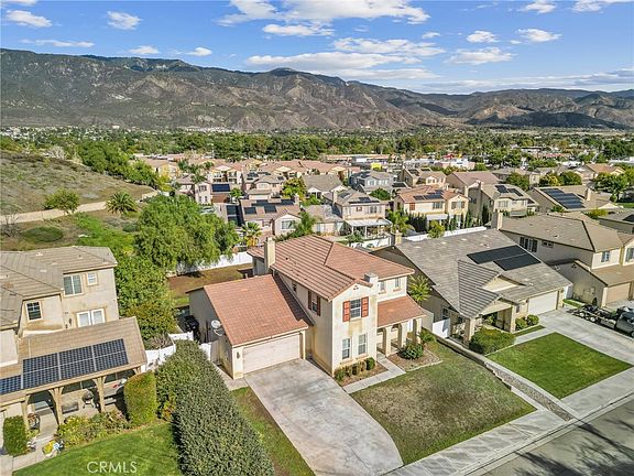 Set against a mountain backdrop in the Shandin Hills neighborhood, this two-story home offers an open-concept layout with generous living spaces. The flexible floor plan provides five bedrooms and three baths, including a main-level bedroom and bath ideal for guests or a dedicated home office. At the heart of the home, a large kitchen with extensive cabinetry, granite counters, full backsplash, and an oversized island opens to the tile-floored family room with fireplace and backyard access. Upstairs, the light-filled primary suite captures hillside views and features an en suite with dual sinks, soaking tub, separate shower, and walk-in closet, with secondary bedrooms near a full bath and a dedicated laundry room. Outdoors, a covered patio, spacious fenced yard, and three-car attached garage are complemented by a location near California State University, San Bernardino, shopping and dining along University Parkway and Kendall Drive, Shandin Hills Golf Club, and convenient access to the 215 and 210 freeways.
