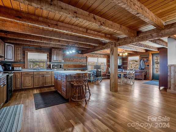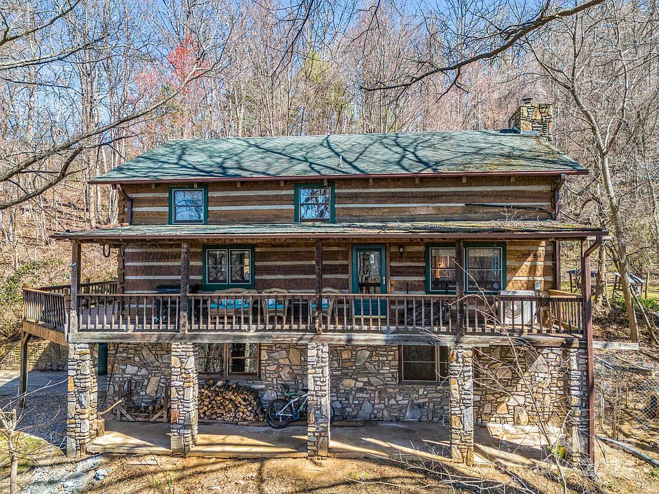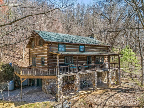 Welcome to your serene retreat nestled amidst the breathtaking beauty of a 24.03-acre mature hardwood forest. This stunning 3 bedroom 3 bath log cabin, crafted from hand-hewn logs, exudes rustic charm and tranquility. Nice bonus room in the basement. Nature enthusiasts will revel in the property's two natural springs, inviting abundant wildlife and a delightful fruit and nut orchard, boasting over 30 trees. The interior of the home is adorned with red oak hardwood floors and tongue-and-groove cedar ceilings. The heart of the home, the living room, features a magnificent floor-to-ceiling rock fireplace with a soapstone stove. The large covered deck off of the main floor offers panoramic mountain views. This property offers many possibilities with it's gardening or exploring the potential for timber projects. Additionally, an older home on the property presents an exciting opportunity for conversion into an art studio or other creative ventures, limited only by your imagination.