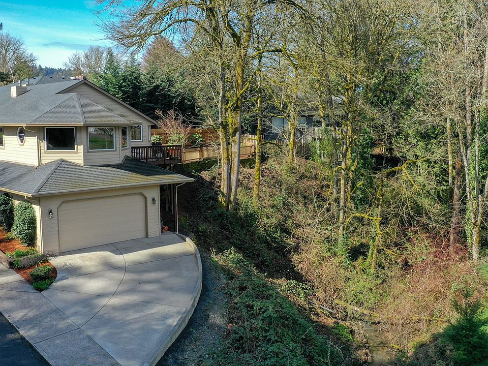 PRICED TO SELL! Traditional Warmth inside and out w/creek and view! Great valued home located in much sought after West Linn! Newer roof, siding, driveway, windows and front porch! Back yard w/deck and garden area. Meandering creek runs through property. Home located on cul-de-sac. SS appliances. 4 bdrms and finished daylight basement w/gas fireplace. Skylight in Kitchen and Master!