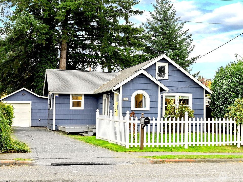 Come see this fully updated 2 bed/1 bath Craftsman home near lively shops and restaurants! Open floor plan, gorgeous hardwood floors, dinning area with French doors leading to an open deck. Massive kitchen with custom tile backsplash, stainless steel appliances, quartz countertops. Primary bedroom has private deck & walk-in closet. Dedicated laundry room, newer water heater, updated plumbing, electrical. Fully insulated garage with loft storage, new lighting, electric car charging hookups, bonus attached shop leading to a fenced backyard. 18 min walk to PSNS, 10 min to Bremerton ferry terminal.