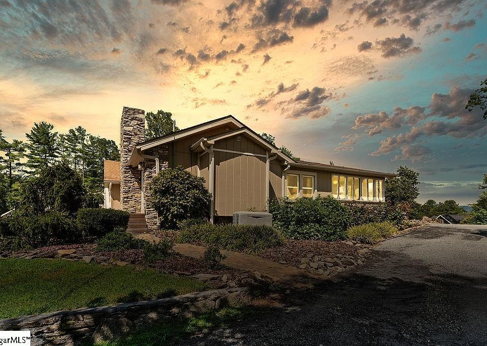 Welcome to this beautiful estate, set over 550 feet off the road on 1.99 private acres with sweeping mountain views from both the front porch and rear patios. This single-story 3 bedroom, 2 bath home (with an option for a 4th bedroom) offers approximately 2,661 square feet of living space with two inviting living areas, a formal dining room, and a sunroom filled with natural light. The main living room—once part of a historic 1938 schoolhouse—centers around a striking stone wood-burning fireplace, complemented by a second electric fireplace for cozy ambiance. From sunrise at the back of the home to sunset at the front, natural light fills the interior throughout the day. Inside you’ll also find hardwood and tile floors, custom cabinetry and backsplash, tankless hot water heaters, and abundant storage. The owner’s suite opens through double French doors to a private patio, while the ensuite bath boasts a Roman walk-in shower with gorgeous tile work. All appliances convey, including the refrigerator, washer, and dryer. The main house features durable Hardiboard siding, while the guest cottage is finished in stone and stucco, adding charm and character. Outdoor living is designed for enjoyment with a front and side deck crafted of low-maintenance Trex decking, a rear patio with picnic area, and beautifully landscaped grounds featuring extensive flower beds, fruit and fig trees, and an available water well for gardening. All exterior doors are equipped with steel storm doors for security and protection. The property is fully fenced and gated for privacy and peace of mind. A circular driveway leads to a detached 2-car garage with a large workshop and an attached potting shed—perfect for gardening enthusiasts. Out back, a charming 1 bedroom, 1 bath guest cottage provides incredible versatility. With tongue-and-groove ceilings, skylights, kitchenette, dining area, shower bath, and a spacious screened porch overlooking the manicured yard, this cottage could serve as private guest quarters—or generate income as an Airbnb/short-term rental thanks to the property’s highly desirable location near Hendersonville and Asheville. The property’s infrastructure has been carefully maintained, including a custom septic system and complete replacement of wiring and plumbing in 2010. A whole-house generator (still under warranty) and a security system provide additional peace of mind and modern convenience. The location is ideal, with Hendersonville and Asheville both drawing thousands of visitors each year for their historic downtowns, vibrant dining scenes, outdoor adventures, wineries, breweries, festivals, and the nearby Blue Ridge Parkway. Just 3 miles to I-26 and under 10 minutes to downtown Hendersonville or the Asheville Regional Airport, this property offers a perfect blend of history, privacy, comfort, income potential, and mountain living.