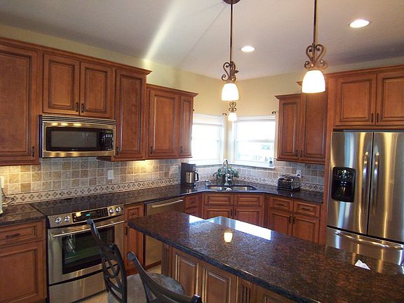 Welcome to this conveniently located and beautifully decorated home. The interior has neutral décor and features many upgrades. From the large yard backing to common ground to the top of the line gourmet kitchen this home has everything you could possibly want! Inside you will find a formal living room & formal dining room with crown molding. The family room provides large 6 window bay overlooking yard and marble surround gas fireplace. An open wine area with wine chiller separates the breakfast room and family room. The kitchen is a chef’s dream! Completely remodeled in 08, no expense was spared. Special features include granite countertops, upgraded stainless appliances including dishwasher and smooth top stove, new lighting, ceramic flooring, ceramic backsplash, planning desk, 42” maple cabinets and breakfast bar. pstairs you will find three perfectly decorated bedrooms and large master suite. The luxury master bath features double bowl vanity, large corner garden tub with picture window, separate shower. The master suite also provides his/her walk-in closets. The walk-out lower level is finished and features wet bar, large recreation area, full bath, 5th bedroom and plenty of storage. Additional features include 9 ceilings on first floor, intercom system, irrigation system, new carpeting throughout! This is truly a must see!