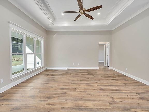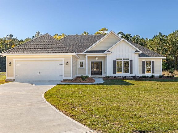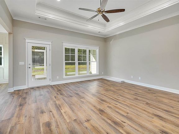 Welcome to this stunning MOVE IN READY brand-new construction located in the desirable River Oaks community. This 4-bedroom, 2-bath home sits on a generous 0.72-acre lot and offers thoughtful design and quality finishes throughout. A charming front porch leads into the foyer and spacious living room, all featuring durable and stylish LVP flooring. The modern kitchen is equipped with stainless steel appliances and includes a pantry with built-in wooden shelving. Adjacent to the kitchen are a convenient mudroom and laundry room. The primary suite is a true retreat with trayed ceilings, a luxurious en suite bathroom featuring double vanities, a separate tiled shower, a soaking tub, and a walk-in closet with custom wooden shelving. Three additional guest bedrooms provide plenty of additional space. A rear porch offers the perfect spot for outdoor relaxation, and a two-car garage adds functionality to this beautifully designed home.