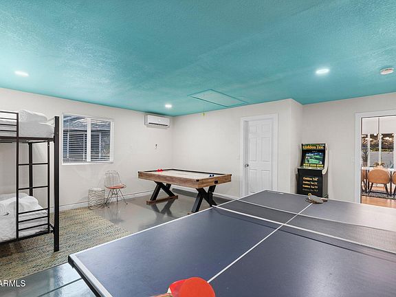 Stunning 4 bedroom Remodeled Home in Tempe featuring Pool, Owned Solar and No HOAl! This home is highly upgraded including a brand new roof and air conditioning unit installed in 2024! As you enter the home you will enjoy the warm engineered hardwood flooring, mid century art deco design accents, and open floorplan perfect for entertaining. The kitchen is light and bright with floor to ceiling shaker cabinets, granite countertops, and stainless steel appliances. Both bathrooms have been remodeled with tile surrounds and modern finishes. The list of improvements continues with dual pane vinyl windows, ceiling fans in all bedrooms, no carpet, and all dated drop soffits have been removed for a uniform ceiling height throughout! The 2 car garage has been converted into a spacious 400 sqft ... livable space that is configured as a game room with new mini split and durable flooring. The north-facing backyard is your private oasis with sparkling blue pool, custom groovy mural, large covered patio, and grass turf/pavers for easy maintenance. This home has an ideal Tempe location close to ASU with easy freeway access and near shopping, dining, parks and more! Homes like this do not last long so be sure to see it before it is gone!