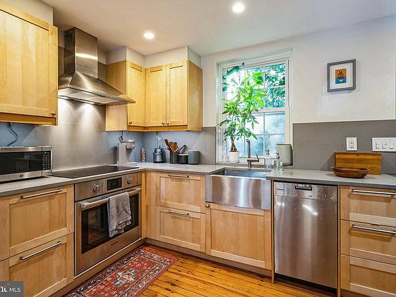 Tucked away in a private, gated brick courtyard on a peaceful, tree-lined street, this beautifully updated trinity sits in the heart of Washington Square West—one of Philadelphia’s most sought-after neighborhoods. A true piece of the city’s architectural heritage, this home blends the charm of its historic trinity design with thoughtful, modern upgrades. Original details—hardwood floors, a brick fireplace, and beamed ceilings—create a warm, timeless character, while recent renovations add a fresh, contemporary feel. The inviting eat-in kitchen is a chef’s delight, featuring high-end appliances including a Miele dishwasher, Bosch refrigerator, Grohe sink with touchless faucet, and Wolf oven with induction range. A built-in banquet with hidden storage, topped by a designer Nelson light fixture, makes the space both stylish and functional. The handcrafted trinity staircase, accented with sculptural custom handrails, leads to the second floor where you’ll find the primary bedroom and a spa-inspired bathroom, perfectly balancing old-world charm with modern luxury. The third floor offers a versatile vaulted space—ideal as a second bedroom, den, or home office—highlighted by exposed beams, recessed lighting, and a cozy gas fireplace. The lower level provides a full basement with laundry and ample storage, enhanced by polished concrete floors and an exposed brick-and-stone wall that adds character. Outside, the private brick patio and landscaped garden offer a serene retreat, perfect for relaxing or hosting summer gatherings. Additional features include newer windows, a Nest thermostat, Smith + Noble solar window shades, and a coveted location within the McCall School catchment. Just steps to Midtown Village, Seger Dog Park, Avenue of the Arts, Jefferson & Pennsylvania Hospitals, PATCO, Whole Foods, Acme, and all that Center City has to offer—this “Walker’s Paradise” boasts a Walk Score of 96. Featured in The Philadelphia Inquirer and Philadelphia Magazine, this home is a rare opportunity to own a stylishly updated piece of Philadelphia history in one of its most vibrant neighborhoods.