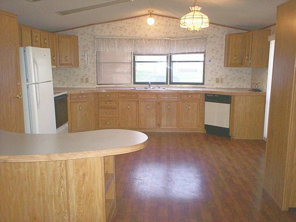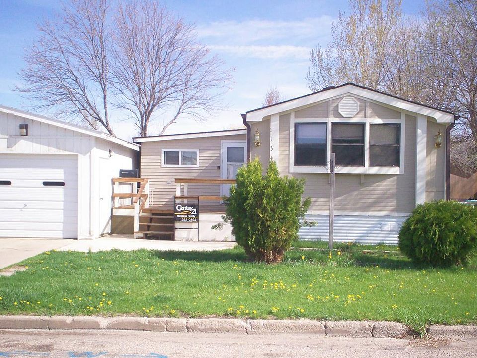 Nice 3 bedroom 16 x 80 1991 Schult Imperial Mobile Home with large entry and front deck. 2 bathrooms (1 pullman). Built-in hutch w/lighting. Large Kitchen and counters. Central Air. Wood Siding. Cement Patio. PP: Range, Refrigerator. $213 lot rent includes 1 stall car garage & city utilities (water/sewer/garbage).
