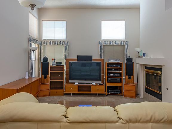 Lovely home, impeccably maintained with pride of ownership!!! Private courtyard with security gate leads to the front door! Step inside and experience a bright and light home with raised ceilings, clerestory windows, living room & family room sharing a 2-way gas log fireplace! A spacious kitchen offers abundance of cabinetry, microwave, dishwasher, electric oven, roomy breakfast area & opens to the family room with an atrium door to the private backyard & large covered patio to enjoy the summertime bar-be-ques! Escape to the generous size master bedroom through double doors, with a private patio! Master bathroom offers double sinks, separate shower, garden tub and walk-in closet! Refrigerated air conditioning! Recent water heater! NICE!