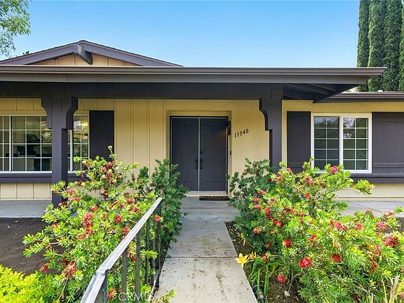 Move-in ready Porter Ranch 3 bedroom 2 bathroom ranch home with double-door front entry, nicely set up above the street, and north of Rinaldi. Living room features a vaulted ceiling, recessed lighting and an inviting fireplace. Very spacious and bright open kitchen and dining area concept features white cabinetry, stainless steel double sink, dishwasher, and microwave oven. Convenient laundry alcove area in hallway. Attractive tile flooring throughout. Freshly-painted interior. The home also features granite kitchen and bathroom countertops, recessed lighting, stylish ceiling fans in all bedrooms, dual pane windows, mirrored wardrobe doors, and a remodeled walk-in shower. Lushly landscaped front yard sloped area with new sod being installed at front entry yard. Oversized 2-car detached garage (22 ft. x 22 ft.) with metal roll-up door, automatic opener, and alley access. The rear yard features a sweeping covered patio, huge additional patio area, ample grassy areas, concrete block perimeter walls, and an additional concrete pad. Large gated concrete patio area offers RV access and parking. Very convenient access to 118 freeway. Local dining, shopping and entertainment options are also nearby, including The Vineyards and Porter Ranch Shopping Center, both within 2.5 miles. UCLA and Kaiser Permanente Medical Centers, and North Valley Family YMCA, are also within 2.5 miles. Coveted Castle Bay Elementary attendance area. Granada Hills Charter High School, Northridge Academy Senior High, Valley Academy of Arts and Sciences High Schools attendance area. Contact schools directly for current information and any limitations.