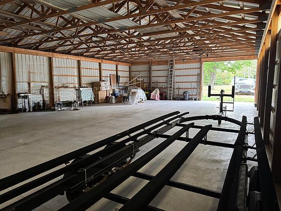 Looking for extra storage space? This 40x64 pole barn with a poured concrete floor is the perfect solution for housing your toys, equipment, or overflow belongings. Featuring a large 11' tall x 13' wide sliding door, it offers easy access for larger items, vehicles, or trailers. The building currently has no utilities installed, but power is available at the road for future connection if desired. Whether you need seasonal storage, workshop space, or room for hobbies, this versatile pole barn on .41 acres is ready to meet your needs.
