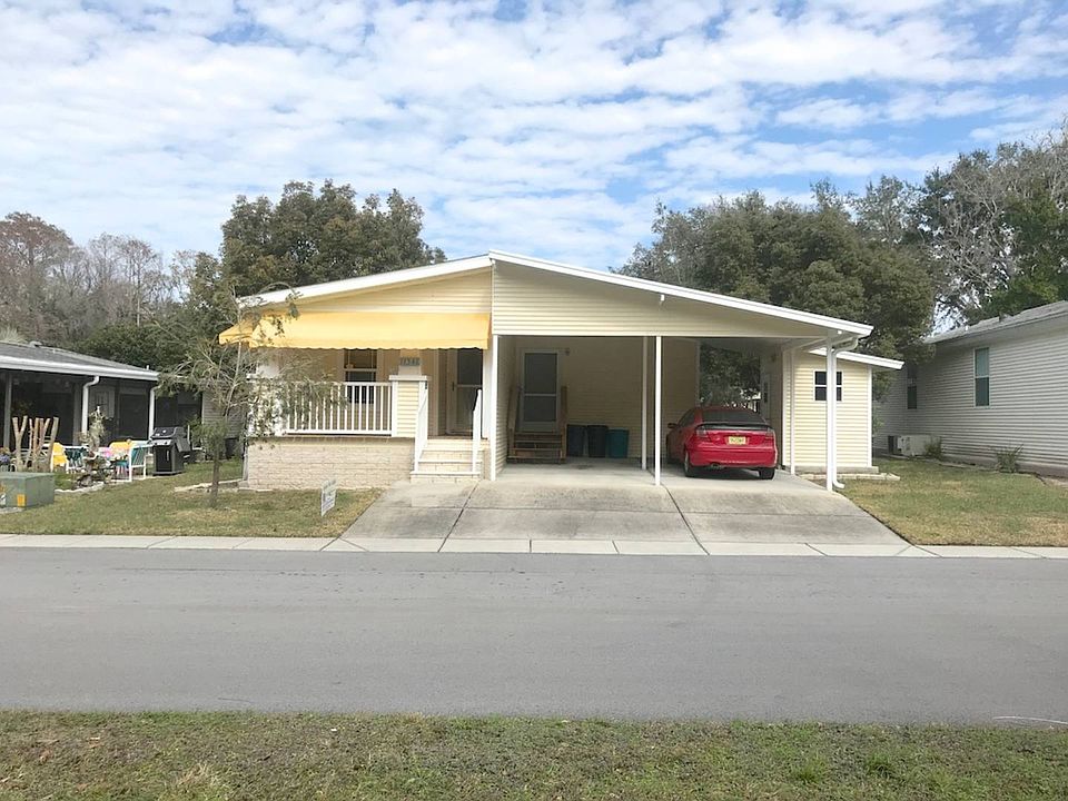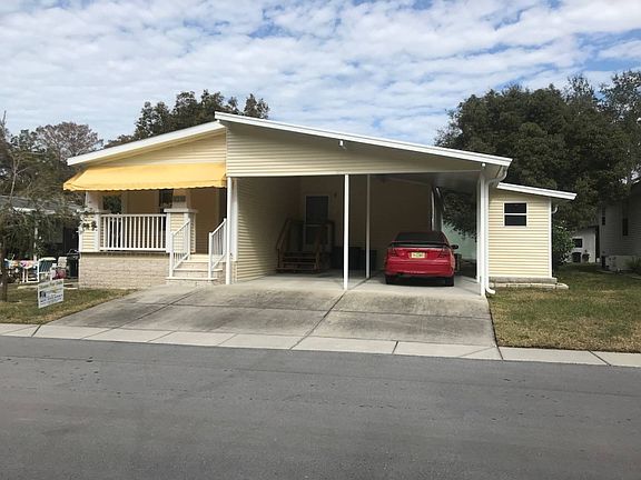 This is a 2 Bedroom, 2 Bathroom 2005 Home Partially Furnished including, dishes, pots and pans! The Spacious Home is approximately 1300+ square feet with New Laminate Flooring throughout the Home and Tile in the bathrooms. The Home has Tall Cathedral Ceilings throughout. There is a Shingled Roof, Front Porch for sitting and a Screened in Back Porch! Inside the Home you reach a Separate Den prior to entering the main area of the home. A hallway off this room leads to either the guest bedroom/bathroom and laundry area or the kitchen. The Guest Bedroom is situated on the front side of the home and is big enough for a queen-size bed and currently has a full-size with a desk and side table. This room has a large closet and windows that brighten the room. In the Hallway between the guest bedroom and the guest bathroom is the Laundry Area with a Washer and Dryer that look like new. This is a closet space and has shelving for your laundry accessories. The Guest Bathroom is in pristine condition with a bathtub/shower, toilet and 1-sink vanity. The Kitchen, Dining and Living Room Area is an Open Design with a Very Large Kitchen that includes a dishwasher, microwave, refrigerator, oven and plenty of cabinets for storage. There is plenty of countertop space and you can even have a breakfast bar. The Dining Area has a nice hanging lamp, opposite side of the room are a wall of cabinets and decorative wall plates. The Living Room is very spacious, loveseat, coffee table, china cabinet, occasional chair and room for much more furniture. The Master Bedroom is off of the living room and has a nice full-size sleigh bed but large enough for a king-size bed, it has 2 antique dressers and an antique pedal sewing machine table. This a large, quiet room on the backside of the home. The Master Bathroom is very clean with a 2-sink vanity, Walk-in Shower with a built-in seat, a handicapped accessible toilet, a Wall of Cabinets for your linens, towels and bathroom accessories. Within this area is a very Large Walk- in Closet. On the backside of the home off of the living room is a very quiet Screened-in Porch, a great place to enjoy the Florida Gulf Breeze. THIS HOME IS PRICED RIGHT WITH A VERY, VERY LOW LOT RENT OF $481, WHICH INCLUDES YOUR LAWN SERVICE AND TRASH AS WELL AS THE OTHER AMENITIES OF THE PARK. IMPERIAL OAKS IS A 55-PLUS MOBILE HOME PARK, PET FRIENDLY ALLOWING 1 PET 35 LBS AND UNDER. IT HAS A HEATED SWIMMING POOL, CLUBHOUSE AND MANY ACTIVITIES. IT IS CLOSE TO SHOPS, RESTAURANTS AND APPROXIMATELY 20 MINUTES FROM THE GULF OF MEXICO. DO NOT LET THIS HOME PASS YOU BY. ----------------------- Financing Options ------------------------
