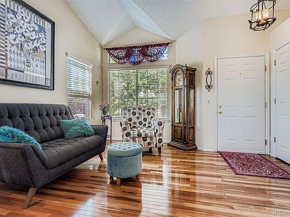 Welcome to this great tri-level home in coveted pool community of Clarks Farms! Step inside to the soaring vaulted ceilings on the main level plus cherry wood floors that create a bright, open feel throughout. The formal living room, dining room, and kitchen all flow seamlessly, perfect for gatherings. The updated eat-in kitchen offers granite counters, pantry, all appliances and excellent natural light. The sunken family room features a gas fireplace and access to the private backyard & patio, ideal for barbecues & outdoor entertaining. A convenient half bath, laundry room, and access to the 2-car garage complete the lower level. Upstairs, the vaulted ceilings continue in the spacious primary bedroom with full ensuite bath and walk-in closet. 2 additional bedrooms share a full bathroom. The unfinished basement provides excellent storage and potential for future expansion. Recent updates include a new roof & exterior paint in 2024, new garage door opener & springs. Around the corner from a pocket park and excellent trail system. This home combines thoughtful updates, a functional layout, and a prime location in a wonderful community-- don't miss your chance to make it yours!