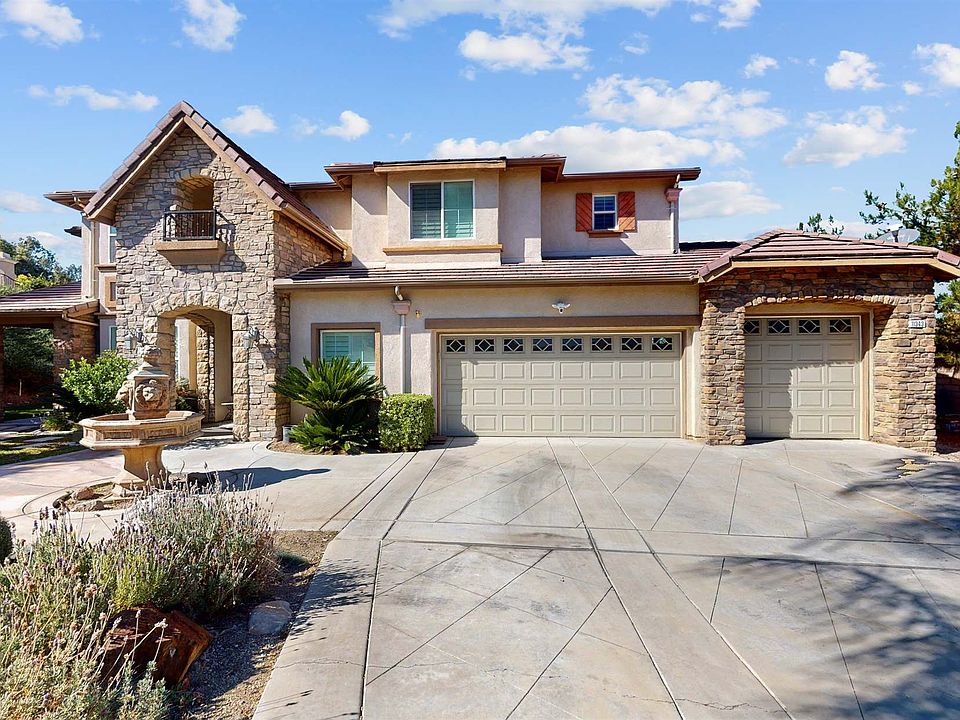 It all begins with the grand curb appeal! Then as soon as you open the front doors, you are welcomed by an elegant entry with travertine floors. To your left you'll see the double glass doors leading to a well appointed executive office, complete with a beautiful built in desk and shelving. Continuing through the entry, as you cross over the impressive medallion inlay, you're passing the formal living room and formal dining room on your right (with French-doors leading to a courtyard). Continue to the family room with gas fireplace, built in entertainment center and picturesque windows to the back yard. To your right, you'll enter the chef's kitchen including walk-in pantry, built-in refrigerator, island with seating, dining area (with slider to back yard) and butler's pantry that leads back to the formal dining room. You'll also find the downstairs en-suite main bedroom with retreat. The en-suite bathroom includes 2 separate vanity areas, large soaking tub separate from the walk-in shower, 2 huge closets with closet organizers, one of the closets are cedar-lined and leads straight to the laundry room. Also downstairs is a large powder room. Head upstairs and to the left you'll see the movie room/bonus room. Straight ahead there are several bedrooms...the first one on the right is complete with a full bathroom. Next, down the hall, you'll find another full bathroom, and 2 more bedrooms with built-in closet organizers. There are shutters throughout the home. You'll have lots of storage space in the 3 car garage (one with a pull-through to the back yard). Enjoy the view of the hills, city lights and distant mountains from the back yard where you can build the back yard of your dreams. Solar is completely paid-for. Schedule a private tour today!