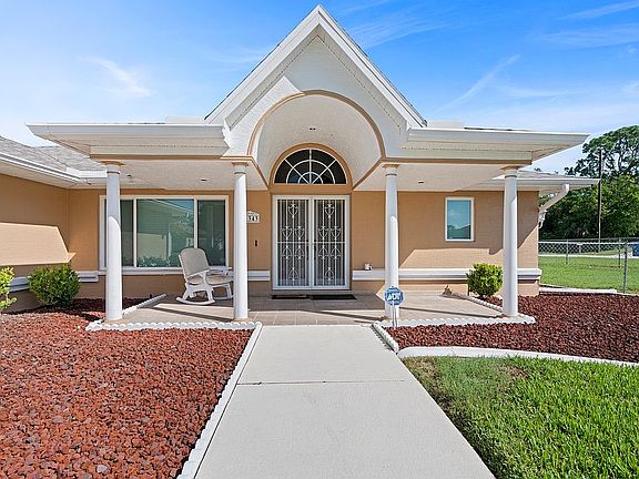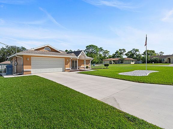 Newer kitchen cabinets, counter tops, stainless steel appliances, roof, double paned windows, tankless hot water heater (all done in 2022). Large corner lot, big shed, RV pad, spacious garage with cabinets, huge screened in lanai with built in desk and cabinets. Great house in a great neighborhood! A title company will be used for any purchase to protect both parties.