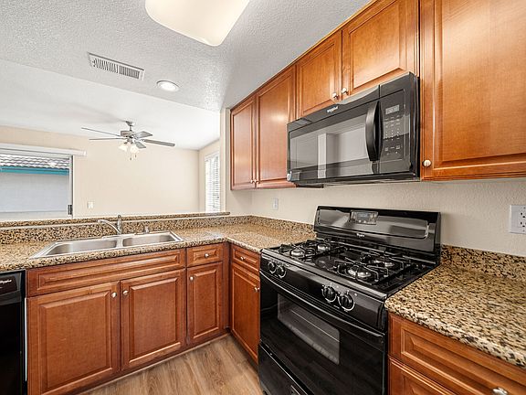 Swimming poolBasketball courtPlay areaFitness centerPalm tree lined entryBlack kitchen appliancesGranite countertops