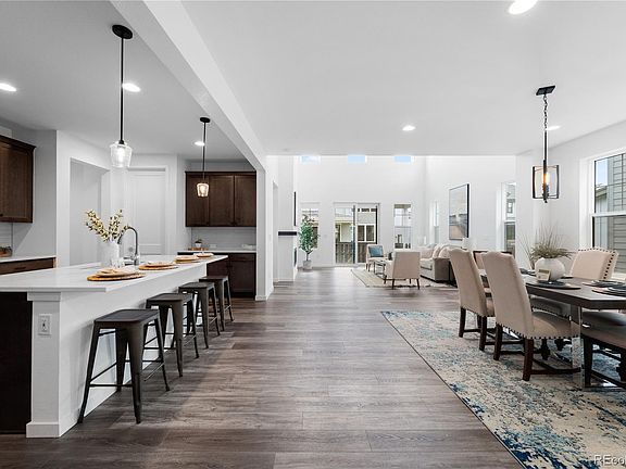 This stunning & move-in ready 4bd/4ba Shea Night Song model located in the desirable Solstice neighborhood! This home is thoughtfully designed with stylish finishes and upgrades throughout. The gourmet kitchen includes modern appliances, custom cabinetry, and a large island, perfect for preparing delicious meals while entertaining guests. The main floor features an impressive primary suite with a spacious bedroom, a spa-like bathroom with a spacious walk-in shower, and a walk-in closet, providing the perfect retreat for relaxation and privacy. A second main floor suite is generously sized and includes its own private bathroom, offering comfortable and luxurious accommodations for everyone in the household. Upstairs, you'll find a versatile loft area that can be used as an office, playroom, or additional living space, PLUS Two additional bedrooms and a full bathroom. Enjoy the Colorado sunshine and indoor-outdoor living with the private maintenance-free turf backyard, which is perfect for hosting barbecues, parties, or simply enjoying a quiet evening under the stars. Located in the heart of Solstice, this home offers convenient access to top-rated schools, parks, community pool, Chatfield Reservoir, and shopping centers. Don't miss out on the opportunity to make this exceptional property your forever home, complete with a main floor primary suite for your ultimate comfort and relaxation.