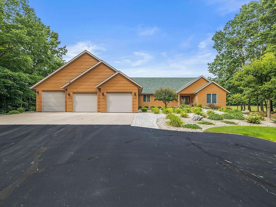 Don't Miss Out on This Stunning Retreat in the Heart of the Great Lakes Bay Region! Nestled on a sprawling 2.78-acre lot, this beautiful ranch home offers the perfect blend of luxury and tranquility. The open concept main floor features breathtaking views of a private pond, visible from the impressive great room with vaulted ceilings and panoramic windows. The kitchen, remodeled in 2018, includes a huge island, a breakfast nook, and a formal dining room. An entire wing of the house is dedicated to the luxurious primary suite, which includes a newly remodeled bathroom with a huge walk-in shower, tub, vanity, and walk-in closet. The primary suite also has access to a charming 4-season porch, perfect for enjoying your morning coffee while overlooking the serene pond. The main floor also includes a family room with pond views, two additional bedrooms, and another fully remodeled bathroom. For those who work from home, there's a dedicated den/office space. A sitting room/family room adjoins the great room and of course there is a view! The walk-out lower level is an entertainer's paradise, featuring a massive rec room with direct access to the beach area, which has stainless railings for added safety. Here, you can paddle boat, fish, or enjoy a meal on the patio seating area. This level also includes a fourth bedroom and a fully remodeled bathroom. Additionally, a 60 x 40 barn, built in 2014, offers approximately 2400 sq. ft. of space with a foundation, full bathroom, and heating. This property also includes a 3-car attached garage. The home features geothermal heating and a new roof installed in 2016. All four bathrooms were remodeled between 2019 and 2024. This stunning retreat is a rare find and won't last long. Contact me today to schedule a viewing and make this dream home your reality!
