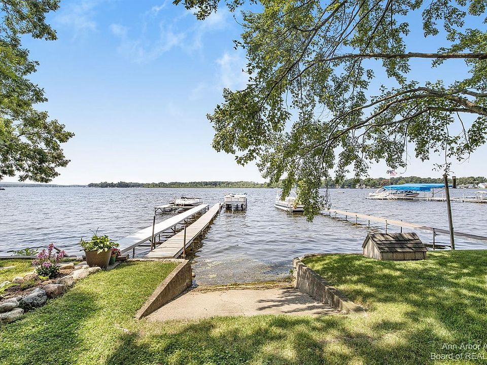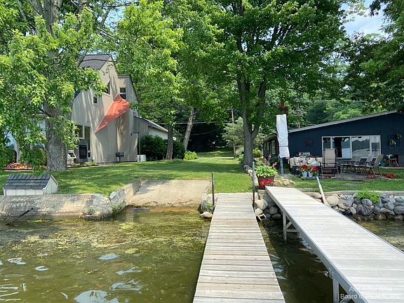 Call listing agent Kiara Nelson for a private tour. Multiple offers received. Offer deadline is Monday July 12th at Noon. Two-bedroom one-bath ranch on nearly an acre with 15 feet of frontage on the northeast side of Portage Lake. Sweeping view of the lake from the four season room with wood-burning stove. Detached 3-car garage with loft area for plenty of storage, as well as additional carport. Shared dock with neighbor. House needs cosmetic updates throughout and is sold As-Is. This would make the perfect airbnb, lakefront getaway or year round home!