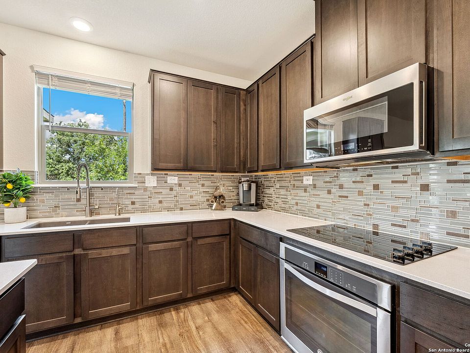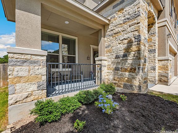Welcome to your new home in the charming hills of Helotes, where meticulous maintenance and thoughtful design come together on an oversized cul-de-sac lot. As you step inside, a functional open floor plan greets you, starting with a study off the entryway that can also be used as a 4th bedroom/flex space. Move into the heart of the home, where the open kitchen, dining, and living areas offer stunning views of treetops and distant hills, creating a serene backdrop for everyday living. The modern kitchen features quartz countertops, stainless steel appliances, a mosaic tile backsplash, shaker-style cabinets, and a generous island with bar stool seating-perfect for casual dining and entertaining. Upstairs is a spacious game room offering a second living area, accompanied by the primary bedroom and two secondary bedrooms. The primary suite is a true retreat, where the beautiful views continue and featuring two walk-in closets, a soaking tub, a separate walk-in shower, and a double vanity. Additional home features include a sprinkler system and a water softener. Refrigerator, Washer and Dryer are included! Don't miss the opportunity to make this exceptional property your own and enjoy the serene beauty and modern comforts it has to offer!