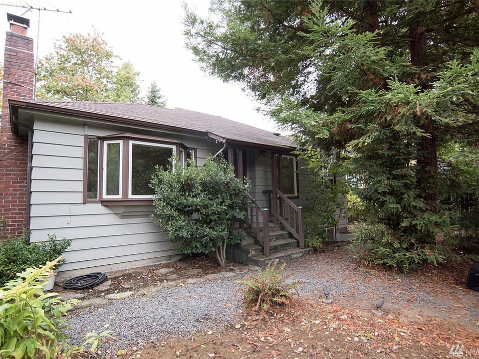 Cape cod on large fully fenced lot with coded gates. Hardwood floors, fireplace, window seat. Covered back porch overlooks expansive garden with fruit trees, grapes and custom mosaic fountain. Outbuilding with power for studio, workshop or garden shed. Large detached garage with new roof. Ample parking in driveway off alley. Fully finished basement with family room, bedroom and bathroom.