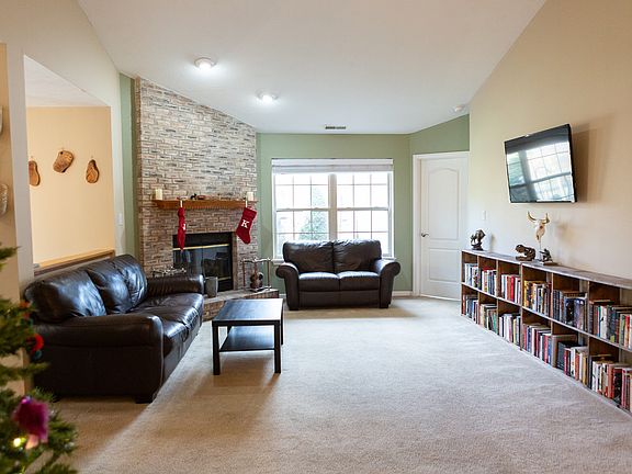This updated 3-bed, 2-bath ranch in Fishers Pointe offers a bright, open layout with vaulted ceilings. The master bedroom features dual sinks, a garden tub, and a shower. A covered patio and extended deck overlook a beautiful backyard with pine trees and wildlife views. Recent updates include a new roof, gutters, and garage door in 2021, along with a whole-home humidifier. New fence in 2020, water heater in 2023. The fenced yard includes a garden area. Enjoy the convenience of a split-bedroom plan and a spacious laundry room. The neighborhood is fantastic, with easy walks to the Nickel Plate District, restaurants, and trails. Nature lovers will appreciate the nearby pond and scenic views.