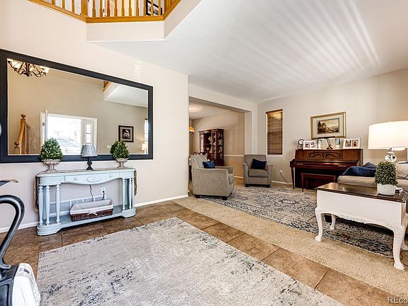 Colorado living at its finest, WELCOME HOME! This 3-car garage, four-bedroom/ 4 bath, nearly 3500 SF home has a fully finished basement and is nestled at the end of a quiet cul-de-sac and does not back to another home. As you enter the home the 2-story foyer is light, bright and welcoming with a beautiful dramatic staircase to the left, formal living and dining area to the right. The open concept kitchen has been recently renovated with quartz counters, 42 inch upper cabinets, stainless steel appliances, gas range, new tile back splash, beautiful island and breakfast nook. The family room is bright and cozy with a wall of windows overlooking the backyard, cozy fireplace and built in art niches. The main level is complete with a half bath and conviently located laundry room. The upper level welcomes you with a open landing and large loft that could be used as a office space or entertainment area and could easily be converty into a 5th bedroom if needed. The primary bedroom is spacious and boasts of a vaulted ceiling, renovated primary 5 piece bath with garden tub, beautiful custom tile and large closet. The upper level is completed with 2 great sized bedrooms and a full bath. The professionally finished basement is an entertainers dream with a large wet bar, TV area with built in shelves, a large space perfect for a pool table, and the bedroom boasts of a nice sized closet and is adjacent to the 3/4 bath. The home's location is on a private lot, the oversized custom stamped patio is perfect to enjoy the summer evenings and the mature trees and landscaping are beautiful. This home is in the popular Legend High school feeder, close to parks and miles of walking trails. Just move in and enjoy! Call today to see your new home.