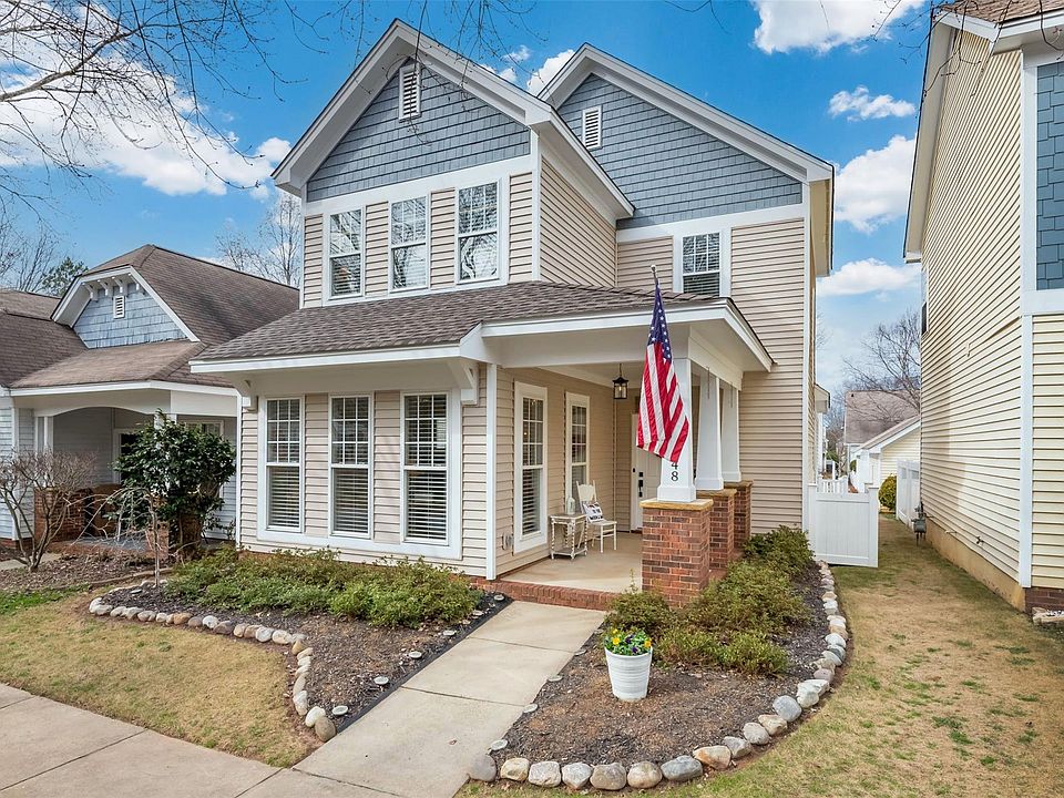 Don't miss this charming "Dilworth style" bungalow in the heart of Ballantyne. Enjoy the front porch views on one of the loveliest tree lined streets in Ballantyne. Light & bright with modern farmhouse decor and natural light shining through-out. Completely updated-from the mailbox to the the smallest interior detail-new hvac, all new flooring, carrara marble flrs in wet areas. Check back for entire list of updates. Seller spared no expense-almost $100K in improvements. Fantastic floorplan, GR with gas FP, dining area, lovely Kit w/bksfst bar, quartz countertop, subway tile backsplash. New sink, faucet and SS appls. Primary BR on main, walk-in closet, Primary BA w/ oversized shower/tub combo. Spacious secondary brms. Large laundry rm w/cabs. (2) Walk-in storage closets. Det rear load gar w/storage. Patio, fully fenced yard, beautiful landscaping. Community park, playground and picnic area. Highly rated schools. Nearby Ballantyne Reimagined and EZ access to 485, 77 and the airport
