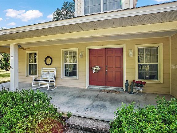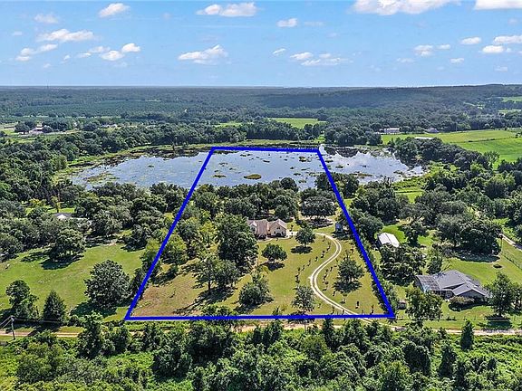 BEAUTIFULLY MAINTAINED 4 BED/3 BATH FAMILY HOME WITH 40X60 WORKSHOP, with 640 sq feet of the workshop under air. As you enter this 11+ acre property, you will find a driveway lined with alternating magnolias and crepe myrtles. The floor plan is nice and open, with a brick wood-burning fireplace as the main focal point in the family room. The lower level has 3 bedrooms and 2 full baths, with a split plan to allow room to spread out. The kitchen will please most any cook, with loads of counter space & cabinets and a closet pantry. The laundry room is also located on the lower level and offers great storage, along with a deep sink. The upper level has a spacious bedroom or flex room and a full bath, offering many possibilities for a large or extended family. The open front porch extends across the front of the home, while the 34x12 rear porch is screened and overlooks the lake at the rear of the property. The workshop with office has 3 - 14' tall drive-thru doors. This building is well insulated and offers storage above the office portion of the building. An easy commute to the FL Turnpike, Clermont, and the County seat in Tavares. THIS HOME IS A MUST SEE!!