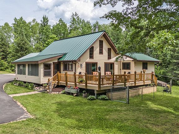 Welcome to this charming 2 bedroom, loft and 1 full bath home sits on 40 acres and is ten minutes from Minocqua, 5 minutes from the Minocqua winter park. Home is cute as a button, neat as a pin. Hunt bear and deer in your back yard. The 48x36 Amish built pole barn has cement flooring with a side lien-to. Over head door is 14 ft wide and 10 ft high with electric opener, sliding door is 12x12 ft. There is also a 4 car detached garage 36x24. There is a 16x12 green house with a propane heater. Tool shed, Outdoor wood furance This home has it all! Welcome HOme!