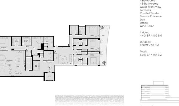 Ce formidable penthouse de 5'027 SF offre la possibiliteÌ de se deÌtacher du rythme tumultueux de la ville et de seÌjourner dans une oasis parfaite entoureÌe de beauteÌ naturelle. L'immeuble ouÌ€ se trouve la reÌsidence permet aÌ€ ses reÌsidents de se reÌgeÌneÌrer dans un environnement sain et authentique, en donnant la prioriteÌ aÌ€ la paix de l'esprit et aÌ€ la tranquilliteÌ, et dispose d'une quantiteÌ infinie de commoditeÌs de premieÌ€re qualiteÌ, aÌ€ commencer par un espace de bien-eÌ‚tre avec une salle de gym preÌsentant des eÌquipements Technogym complets, un spa reÌparateur avec sauna et bain de vapeur, et une salle de yoga. En outre, l'immeuble dispose d'une piscine sur le toit de style station balneÌaire avec un ameÌnagement paysager luxuriant qui permet d'admirer une vue ineÌgaleÌe aÌ€ 360 degreÌs sur la ville et la baie ; la terrasse comprend un salon et une cuisine d'eÌteÌ inteÌgreÌe. En outre, l'immeuble dispose d'une marina priveÌe avec 15 emplacements pour des bateaux de 36 aÌ€ 60 pieds et un acceÌ€s direct et facile aÌ€ l'oceÌan, ainsi qu'un quai de mise aÌ€ l'eau pour les sports nautiques avec des kayaks, des planches aÌ€ pagaie et des structures gonflables. Bay Harbour est consideÌreÌ comme l'un des meilleurs endroits ouÌ€ vivre en Floride ; il s'agit d'une communauteÌ priveÌe et dynamique composeÌe de magnifiques maisons et de condos de luxe. Elle n'est qu'aÌ€ une courte distance en voiture des villes voisines et exclusives de Bal Harbour et de Surfside, ouÌ€ vous trouverez davantage de magasins et de commoditeÌs. SeÌpareÌe du continent par la baie de Biscayne, la vie sur Bay Harbor Islands offre les plus incroyables vues sur la baie, l'air de deÌtente que procurent le soleil et les brises de Floride, et les lumieÌ€res magiques de l'horizon de Miami la nuit. Ce magnifique penthouse preÌsente une eÌleÌgance et une sophistication incroyables. L'eÌclat du marbre, la touche naturelle des portes en bois sont le fruit de la magie de l'artisanat italien, consideÌreÌ comme le meilleur au monde. De plus, la maison comprend quatre chambres aÌ€ coucher, un bureau, une cave et des feneÌ‚tres coulissantes en verre reÌsistant aux chocs et toute hauteur, le tout pour profiter de la baie depuis une terrasse spacieuse de 626 pieds carreÌs reveÌ‚tue de sols en porcelaine italienne. La cuisine Snaidero est conçue avec des comptoirs en marbre et entieÌ€rement eÌquipeÌe avec des appareils haut de gamme de fabrication allemande Miele creÌeÌs pour offrir aÌ€ ses reÌsidents et aÌ€ ses inviteÌs une expeÌrience gastronomique holistique compleÌ€te. Enfin, les 4,5 salles de bains preÌsentent la beauteÌ intemporelle du marbre Statuarietto, la qualiteÌ italienne des armoires conçues par Milldue et les lignes eÌleÌgantes des robinets Dornbracht. AUTRES PLANS D'EÌTAGE DISPONIBLES Avec l'aimable autorisation du groupe CMC