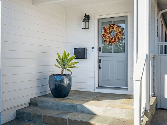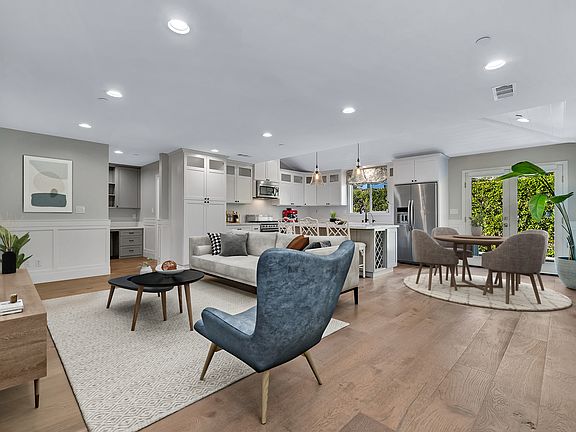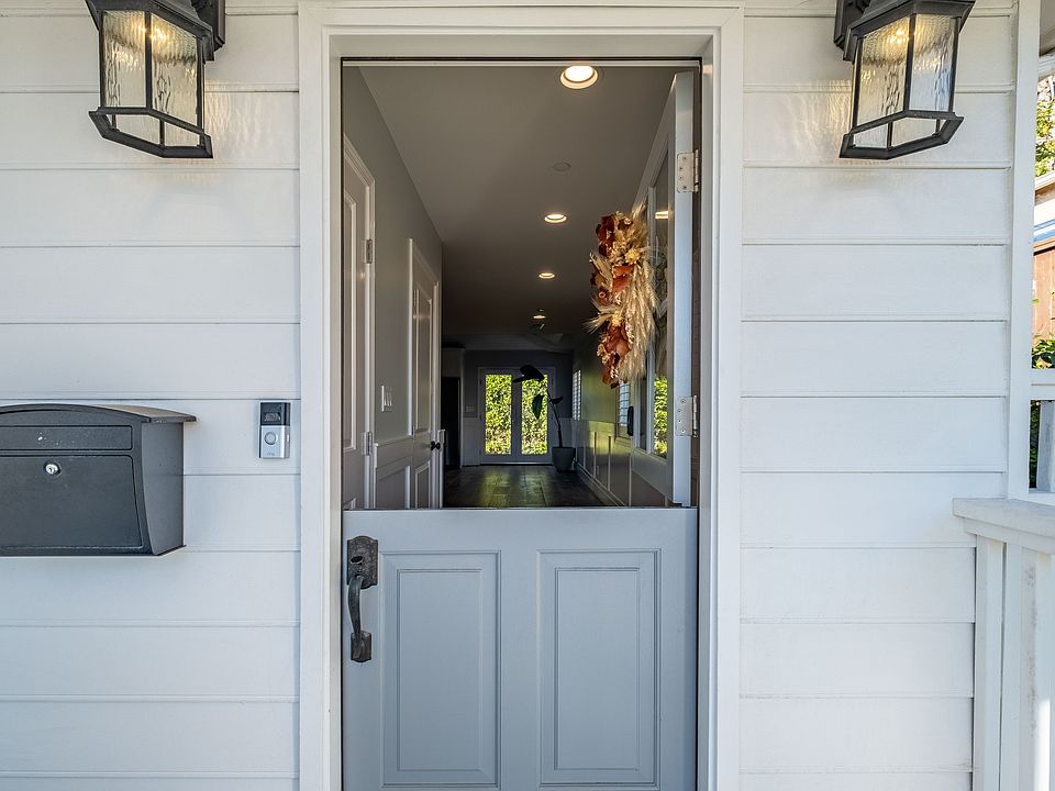 From the moment you arrive, the classic white picket fence and lush, manicured front yard set a warm and inviting tone. Step through the charming Dutch door and into a sun-drenched, open-concept living space featuring soaring ceilings and impeccable finishes. The gourmet kitchen is a showpiece, boasting a farmhouse sink, matte black hardware, and sleek stainless steel appliances perfect for both everyday living and hosting with style.