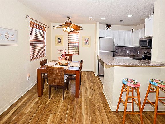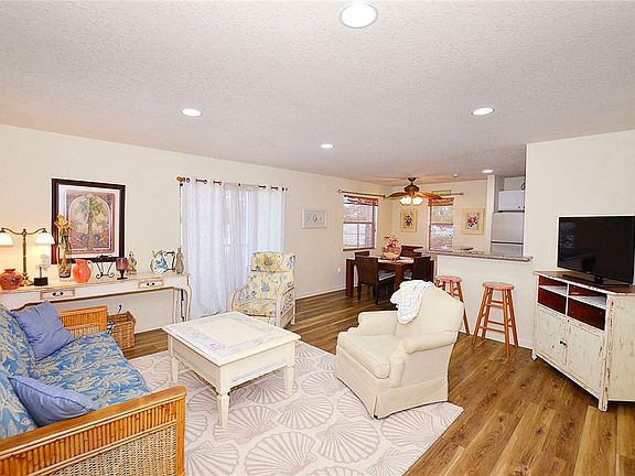 This inviting fully furnished two-bedroom, two-bath ground floor condo offers the perfect blend of comfort and convenience. Ideally situated just steps from the community pool and within easy reach of beautiful nearby beaches it's a wonderful retreat for full time living, a vacation getaway or investment property. The ground floor location provides easy access with no stairs and a private patio to enjoy the breeze after a day at the pool or beach. New flooring throughout, freshly painted, newer hot water heater and corner unit offers extra window in dining room adding lots of natural light.