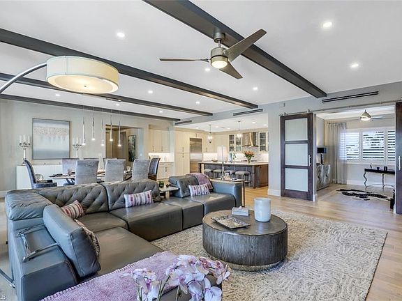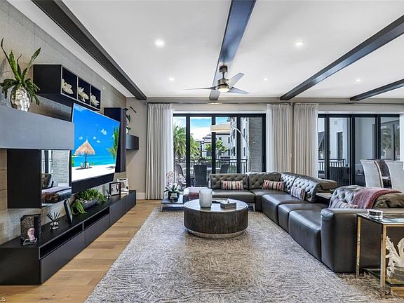 No detail was overlooked or expense spared with this professionally designed and decorated, turnkey furnished Downtown Naples residence. With almost 2,900 sqft. of luxury living space, the 3 bedroom, plus den, 3 1/2 bath home represents the best that Naples Square has to offer. Built in 2019 in compliance with stringent building codes, the home is outfitted with all impact resistant exterior doors and windows. The home includes over $1,000,000 of builder upgrades & furniture & fixtures. Upgrades include wide plank hardwood floors, custom sliding French doors, ceiling beams, a Sub-Zero refrigerator, a natural gas Wolf range, and much more. The South facing lanai overlooks the lush courtyard that includes a resort style pool, hot tub, gas grills, dining areas, and two fire pits. The home comes complete with a humidity controlled storage unit, two under-building parking spaces (one reserved), and additional bike storage. Naples Square III has a state-of-the-art fitness center, a conference room, and a Club room. Naples Square is a pet friendly community with no size limits for your 2 furry friends. Don't miss this beautiful home in the heart of Naples' vibrant Design District.