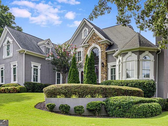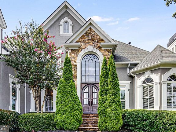 Class, comfort and convenience; this home exudes all three. Situated among the tree-lined streets of the private, guard-gated St Ives Country Club community sits this stately, European-style home. The mature landscaping and stunning curb appeal of the hardcoat stucco and stone exterior greet you upon arrival. Enter through the custom arched iron front doors and into soaring ceilings, abundant natural light, gleaming hardwood floors, extensive custom millwork and designer touches throughout. The thoughtful floorplan seamlessly blends formal and casual spaces. Pass by the vaulted fireside room in the front of the home that's ideal for a large home office, formal living room, music room or library. The two-story great room features a second fireplace, custom built-ins and a wall of windows that overlooks your private backyard oasis with a huge open-air deck, flat backyard, heated saltwater Pebbletec pool and outdoor fireplace. The renovated kitchen is the heart of the home with Wolf/SubZero stainless appliance suite, quartzite countertops and a large island that flows into the vaulted keeping room, with a third fireplace, and an oversized breakfast area with seating for 6. You'll love the adjacent butler's pantry with modern farmhouse vibes that features a custom barn door, shiplap accent wall, sink, beverage fridge and floating wood shelf details. But, don't worry, there's also a large walk-in pantry for food storage! One-level living is achievable in this home with a master suite on the main level highlighted by 18' trayed ceilings, dual walk-in closets and a modern, spa-like ensuite bathroom with individual vanities, a large shower and soaking tub. Completing this level is a formal dining room, custom mudroom off the 'friends entrance,' large laundry room and beautiful powder room with designer wallpaper. The upper level of this home, reached by one of two staircases, includes three expansive guest bedrooms, two with a shared bathroom and one with a private ensuite. The sprawling, and thoughtfully renovated, basement is the perfect spot for casual entertaining. You'll love the large wet bar with island seating for 8, casual living room, expansive game room, office/craft room with custom built-ins, home gym with steam shower, guest bedroom with ensuite bath plus a secondary full bath. There is also a large storage room for all of your overflow items. In addition to the aforementioned outstanding features, this home has new windows throughout, a new hot water heater, a new pool pump and three HVAC systems that are less than 5-years-old. The property is situated on one of the most sought-after culdesac streets in the neighborhood. There is optional membership to St Ives Country Club where you can enjoy a stunning European-inspired clubhouse with multiple restaurants, a very active tennis community with 16 tennis courts & 4 pickleball courts, a sprawling playground for the kiddos, a basketball court and, of course, an award-winning private golf course designed by Tom Fazio. Zoned for top-rated public schools in Johns Creek and conveniently located near coveted area private schools. Johns Creek was recently voted the #1 city in the state of Georgia and a top city in which to live in the United States. This property is sure to check all of the "boxes" on your dream home wish list!