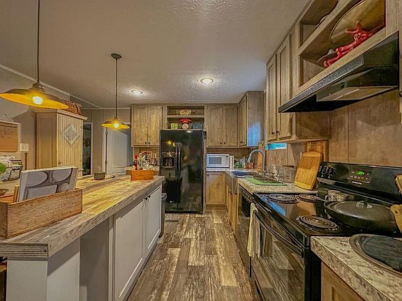 The perfect rustic retreat awaits you! This beautiful home offers three bedrooms, two bathrooms, and plenty of space for those looking for privacy. A peaceful creek runs the entire length of the property and a bridge connects both parcels of land. A natural log covered porch and deck have been added to the front and back of the home lending to its rustic feel. Inside you will find all the modern conveniences with an open concept layout and split bedrooms. A large carport and two Amish-built garden sheds also remain with the home and the remaining term of a 5-year extended warranty transfer to the new owners. Nestle in and make yourself at home!