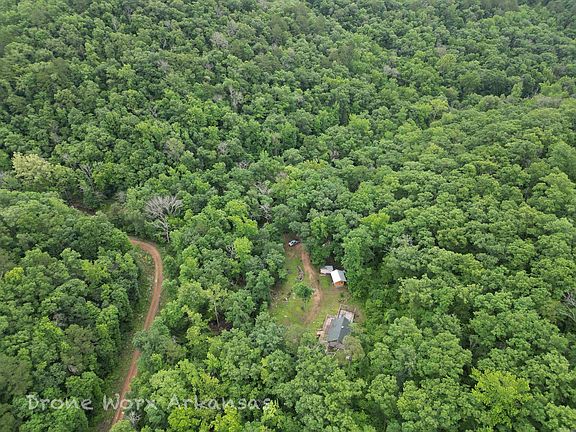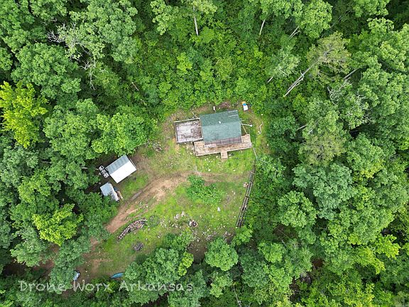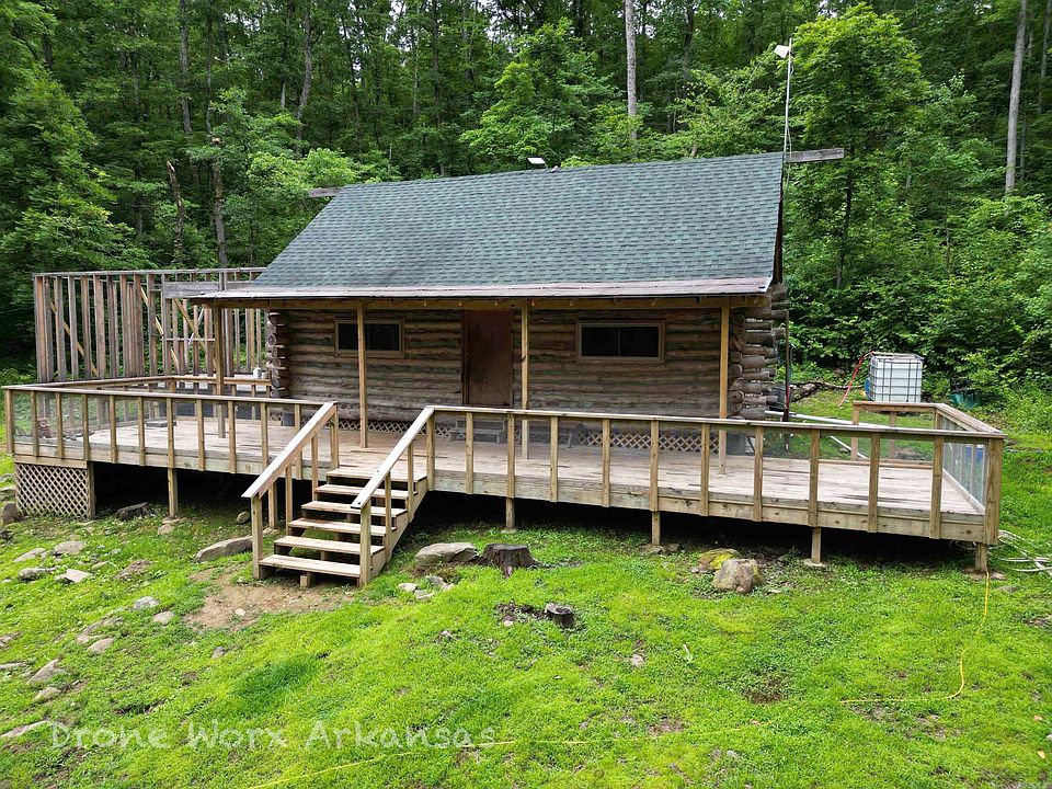 Welcome to "The Pioneer Place". A 10 acre parcel on a creek. This home was custom built by the owner with most of the materials harvested off the land. A rustic homesteading cabin or hunting lodge where you can find peace and quiet. Relax on the front deck listening to the running water and birds that make their homes in the dense timber. This remote refuge has electricity and pulls water from the creek. The open concept log house has a loft that was used as a bedroom with bunk beds below. And a complete surprise on this rustic place is the state of the art bathroom shower. There are outbuildings for tools and storage as well as a chicken coop. Some items on the property may convey. A cell phone booster allows you to stay connected to emergency services and online info, but the location allows for a life getting back to nature. Plant a garden, stay hidden, hunt the land, and get back to stillness. As is where is, there is potential and space enough to expand and make it your own whether that is finishing the room addition, building another home site, or just make personal touches to make this "Pioneer Place" how you see fit.
