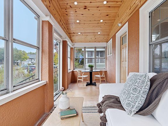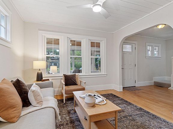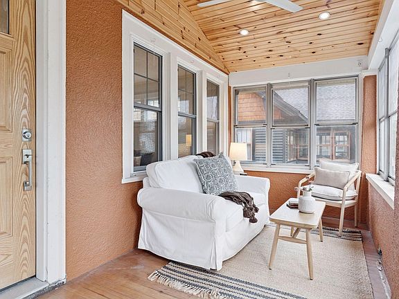 Welcome to this dynamic Three-Bedroom, Three Bath gem, brimming with a delightful blend of classic charm and fabulous updates, and located in a most convenient St. Paul neighborhood! The inviting front porch was remodeled in 2018 with a vaulted wood paneled ceiling with recessed lights and a breezy ceiling fan. Accented with windows on three sides, this is the ideal place to sit with your morning coffee and watch the seasons change. Step into the sun-drenched living room to find lovely hardwood floors and bright windows to bathe the space in natural light. One end is designed as an area for a formal dining room, featuring a ceiling fan and triple windows.