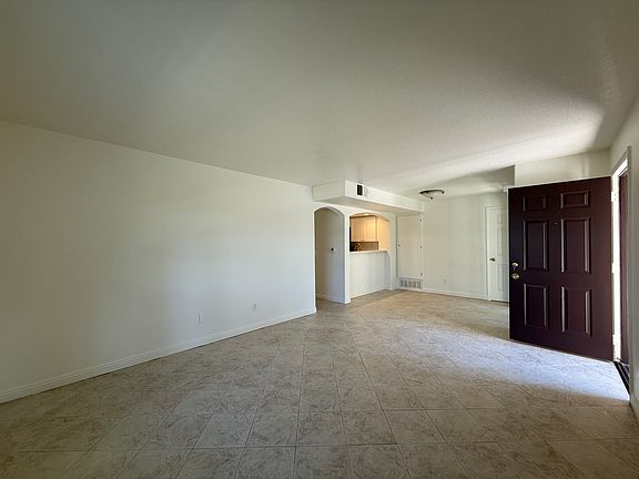 Ground level single story unit, no steps, with a new kitchen this year featuring quartz counters and white shaker cabinets, new microwave, oven and range, fridge and dishwasher are included. Freshly painted throughout, new luxury vinyl bedroom floors plus tiled floors in all other areas. Small patio, enough for a BBQ and a couple of chairs. Detached single car secure garage, plus one parking spot. Indoor laundry unit is included. Central A/C. Pool and jacuzzi just on the other side of the building. Quiet location. Water and trash are included. Owner pays the HOA. Pets, most likely yes, please ask.
