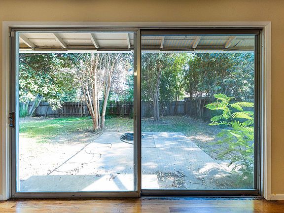 Lovely tree filled property with original hardwood floors, brick fireplace, huge slider opening allowing all the light to flow in from fenced backyard. 3 bedrooms, 2 baths, 2 car garage, central heat and air, lots of cabinet space in this home, including cabinet pantry.