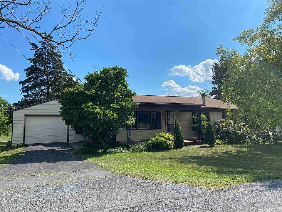 One level living just outside city limits on 0.62 acres. Home offers oak floors, replacement windows, roof and oil furnace less than 10 years old. Potential basement apartment or in law quarters with kitchenette, fridge, stove and new carpet. Property has a well that current owners use for irrigation and watering the lovely vegetable garden space, but home is connected to city water. Single oversized garage.