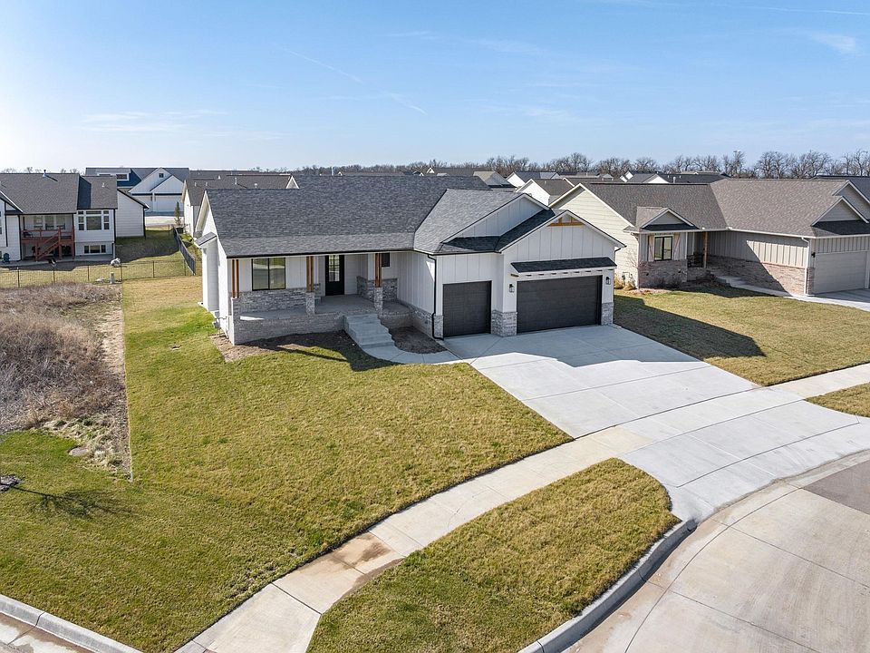 ***$5000 closing cost offered. This is award winning layout is being built in Arbor Creek on a nice corner lot next to a berm, this mid-level walk-out home features a gorgeous front elevation with black windows and gabled roof. Entering the home you will find an open living room kitchen design. There is plenty of windows for natural lighting, shiplap at the electric fireplace, floating shelves and upgraded flooring. Keystone has upgraded the kitchen with painted cabinets, under counter lighting, tall cabinets, soft close drawers, decorative exhaust at the hood and today's style hardware on cabinets. This plan is a mid-level walk-out basement to a concrete patio. You will find that this home has upgraded features to include high efficiency HVAC, garage door openers, tall vanities, upgraded door hardware, granite counter tops, wash sink in the laundry and so much more! Some information is estimated and cannot be guaranteed. Options and pricing are subject to change without notice.