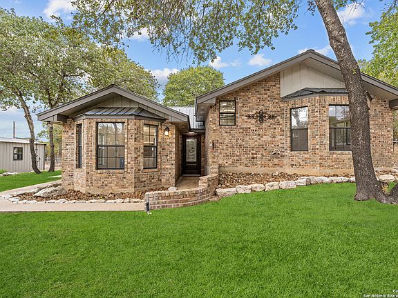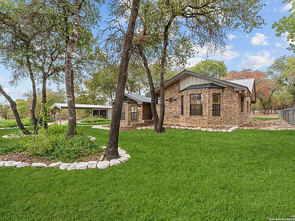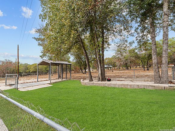 Step in this beautiful newly remodeled 3 bedroom 2 bath home on nearly 2 acres in highly sought after La Vernia School District. This home features new tile flooring throughout, large farmhouse sink, under cabinet lighting, newly painted cabinets, backsplash and solid countertops. All new low energy LED lights throughout home, fresh interior and exterior paint and large brick wall with insulated super efficient wood burning stove on raised hearth. Peaceful country living with only a short 10 mile drive to La Vernia H-E-B. Stone pond with waterfall behind the back patio. Irrigation system in the front and backyard. 27x24 Covered workshop featuring extra wide garage doors. Brand new built in 2023 30x24 covered carport parking perfect for larger truck, boats, etc. Workshop has sink and toilet. Behind workshop is a wooden 10x8 storage shed and covered dog run. Property is fully fenced with an automatic custom gate entrance. All appliances including refrigerator, washer and dryer is included with the home. Welcome to peaceful country living where you can enjoy wildlife from your back patio, schedule a showing today!