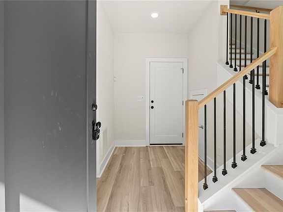 Knights Walk at Howell Station, where every unit is an end unit. These brick and batten board-clad, fee-simple CityHomes provide abundant natural light provided by windows on three sides of every unit. Real usable outdoor space is found on the large, covered deck adjacent to the kitchen. The lower level includes a half bath and a single-car garage with extra storage. The main level includes a great room with living and dining areas, a well-appointed kitchen, and a covered rear deck. The light-filled upper level has a primary suite with an ensuite bathroom with double vanity, a large floor-to-ceiling tile shower, and a separate water closet. The secondary bedroom, bathroom, and laundry closet complete the upper level. Floors are durable luxury vinyl throughout the unit, and all countertops are quartz. Knight Walk at Howell Station includes a dog walk and a community common area. This walkable location is only blocks away from Knight Park, the Beltline entrance adjacent to Westside Paper, and King Plow.