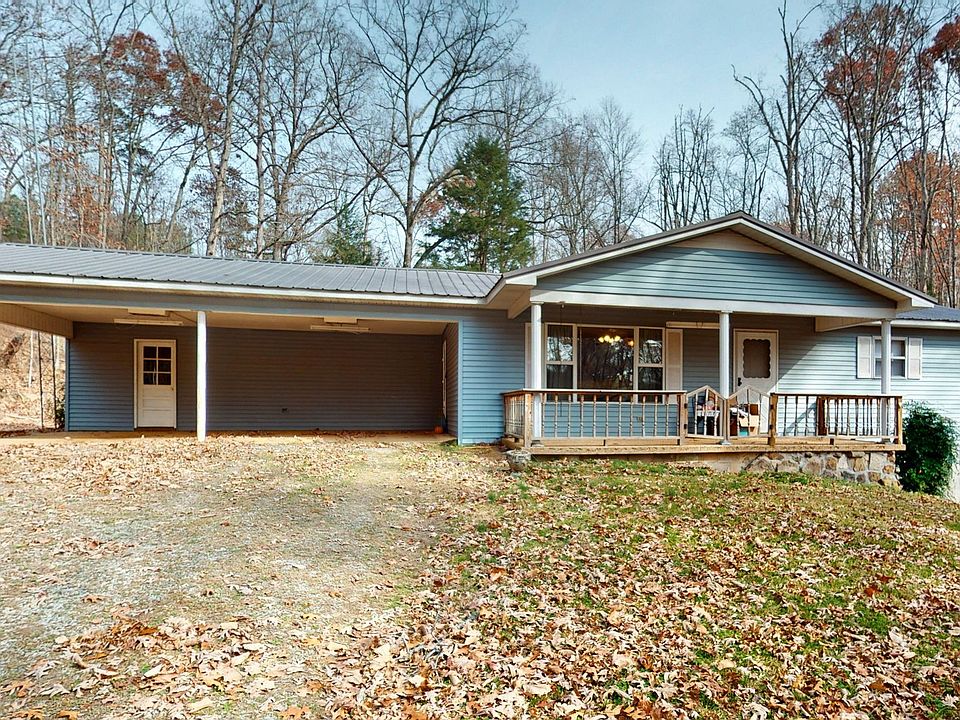 Welcome to your private Tennessee retreat on 8.99 acres of pure beauty. This single-level home, with a basement, offers incredible long-range views, unmatched privacy, and the freedom of no city taxes—all while staying conveniently close to town amenities. A welcoming covered front porch leads you into an open, light-filled living room featuring a large picture window that frames the views that seem to go on forever. The kitchen provides generous counter space, abundant cabinetry, and an additional seating area perfect for casual meals. A dedicated dining area adds even more functionality. You’ll be amazed by the oversized walk-in pantry / laundry room combo—one of the largest you’ll find—ideal for storage, organization, or a multi-purpose workspace. The spacious primary suite/flex room is fully private from the other bedrooms and features its own exterior entrance, ample windows, and room to create your perfect oasis. This home also includes a full unfinished basement with its own bathroom, offering endless possibilities for future expansion, guest accommodations, hobby space, or additional living areas. This home has a detached garage and a covered 2-car carport for all your parking and storage needs. If you’re looking for acreage, privacy, and views in a peaceful county setting—this is the one. Grab yourself a snack, sit back and relax and watch this video of your new home. https://youtu.be/CQ16K3h51kQ Do not put off seeing this home in person.
