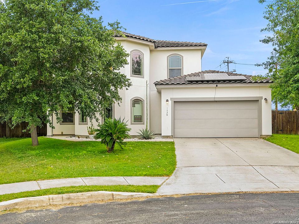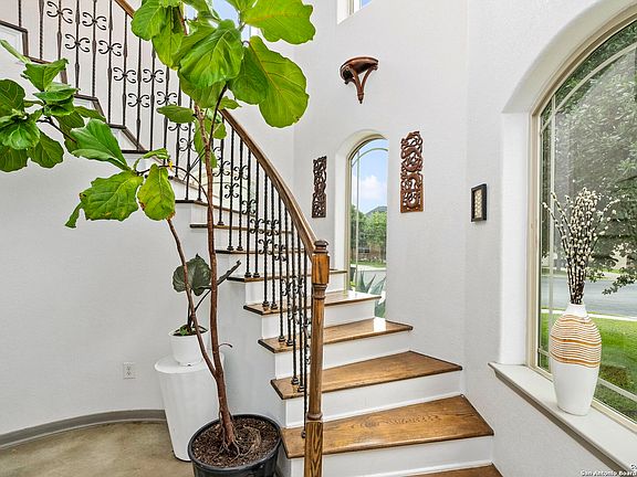 This gorgeous custom home sits on over a quarter acre lot just down from the lake in Mission Del Lago. The meticulous interior finishes include ten foot ceilings, posh soft close cabinetry and custom Quartz countertops. This home exudes class and luxury! Inside, a grand entrance with spiral wrought iron staircase greets you and guides you to the open floor plan with a gigantic family room and adjoining kitchen offering custom cabinetry, complementing granite counters, a stylish backsplash, and a walk-in pantry. The living area is made for entertaining and has ample room for a sectional or any number of different arrangements. The primary bedroom offers tray ceilings and ample natural lighting. The en suite has a gigantic, custom walk-in shower, a sit-down vanity, and dual sinks. Amazing walk in mater closet! This property also has four spacious bedrooms, each with walk-in closets. The back yard oasis features an almost new above ground pool with freshly installed deck, tons of space, and plenty of privacy. Solar Energy System with 32 commercial grade panel reduce your energy bill to almost nothing! Convenient to Toyota, A&M San Antonio, Lone Star, shopping, dining and entertainment.