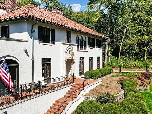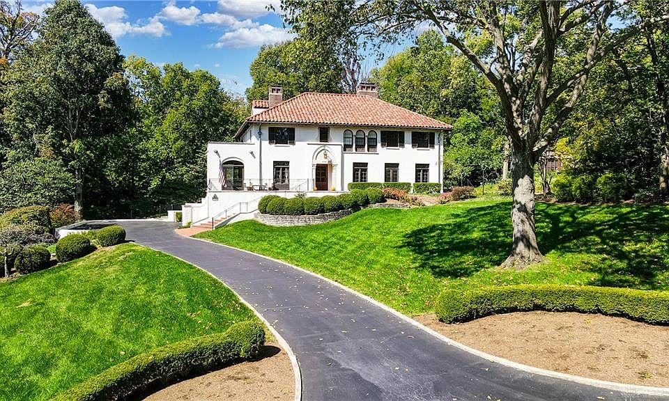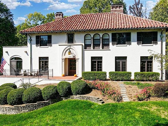 Inspired by Estates in Tuscany!Discover outstanding,old world craftsmanship in this bright&beautiful Mediterranean style home where every room has character.See the tall leaded glass windows&doors,both with transoms & coordinating scrollwork designs.Two impressive limestone fireplaces w/ new premium gas log sets and remote controls.The original light fixtures throughout include two lovely sconces that highlight the living room fireplace. Notice the intricate plaster details in the library & the cheerful sunroom that opens to the front porch with stunning views of the rolling 1.2 acres. A must see front door & Rookwood tile in the foyer set the tone for his lovely home.The dine-in kitchen includes a wide,curved window seat that overlooks the private back yard and large flagstone patio.Much of back yard of this 1.2 property has been fenced.The flagstone patio has covered & uncovered areas to enjoy & can be accessed by the office,two kitchen doors & the door from the walk-out lower level.
