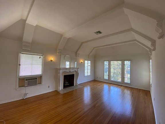 Welcome home! This 2 bed, 1 bath, upper duplex unit excludes character and charm, featuring beautiful original hardwood floors, stunning architectural beams and arches, formal foyer, large dining room, updated kitchen, updated bath, tankless water heater, laundry room with washer/ dryer, 1 car garage (detached) with 1 additional parking spaces, and shared rear yard. The living room is a showstopper with baroque style beamed ceiling and fireplace, original hardwood floors, large windows, and AC wall unit. The large formal dining room has plenty of windows and easily flows into the kitchen and 2nd dining area. The kitchen features tiled floor, quartz counters, subway tile backsplash,stainless steel appliances (refrigerator, range hood, oven, sink) and dishwasher. Beyond the kitchen is the laundry room with side-by-side washer and dryer, sink, and door to the back yard. The primary bedroom has bay windows, AC wall unit, built in vanity, and two closets. Bedroom 2 is also sizable with AC wall unit. The large bathroom has tile floor, separate bathtub and shower, quartz counters on vanity with plenty of counter space, subway tile backsplash. Owner pays for water and gardener. Renter pays for gas, electricity, trash. One car detached garage, one open parking space in rear